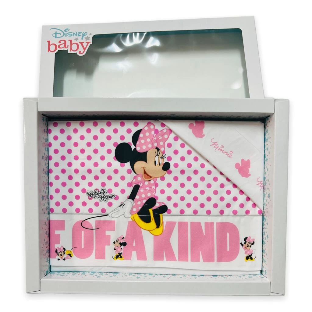Comprende il lenzuolo di sotto (50×95 cm), il lenzuolo di sopra (80×110 cm) ed una federa (28×37 cm).