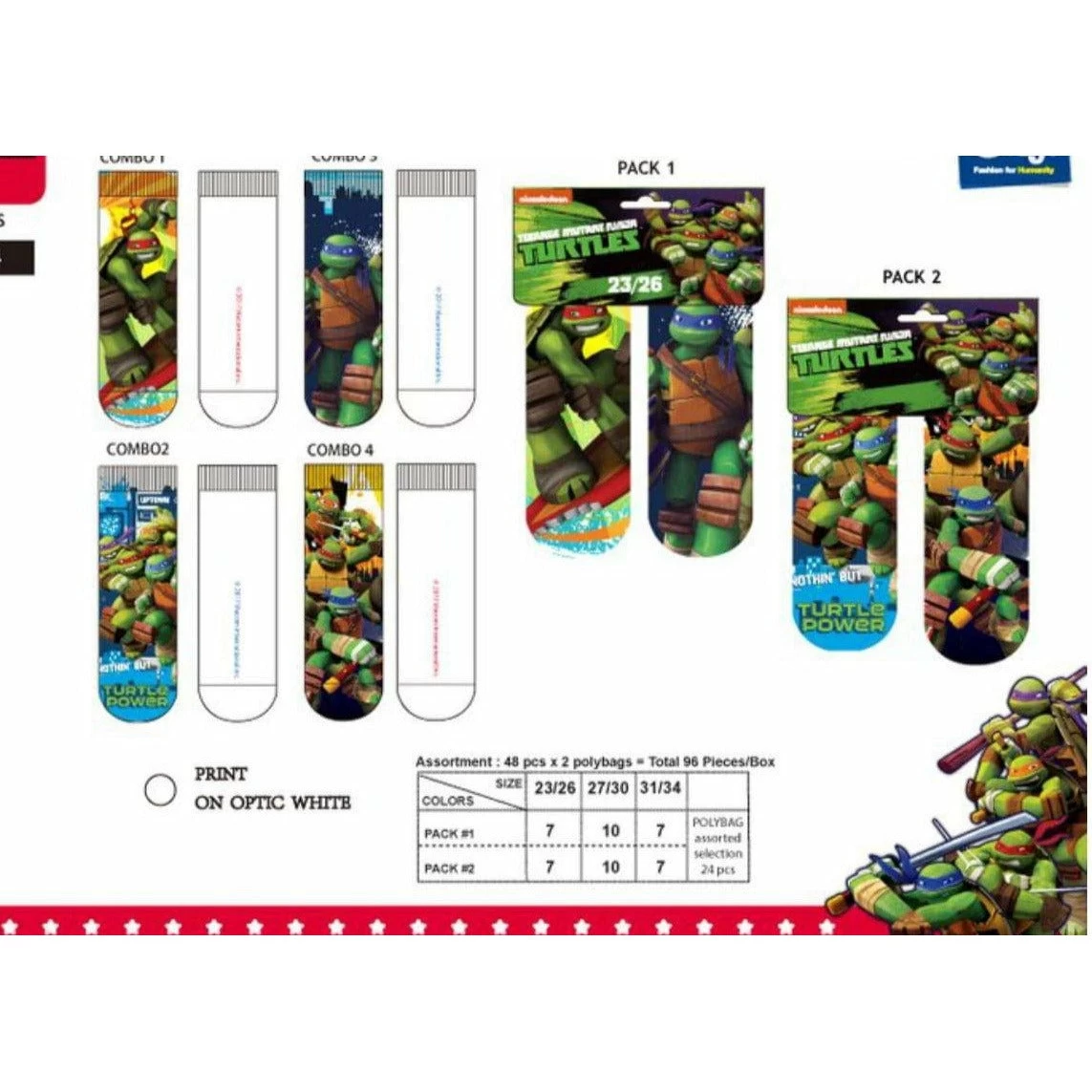 Coppia calzini Tartarughe Ninja corto bimbo 23/34 fantasia